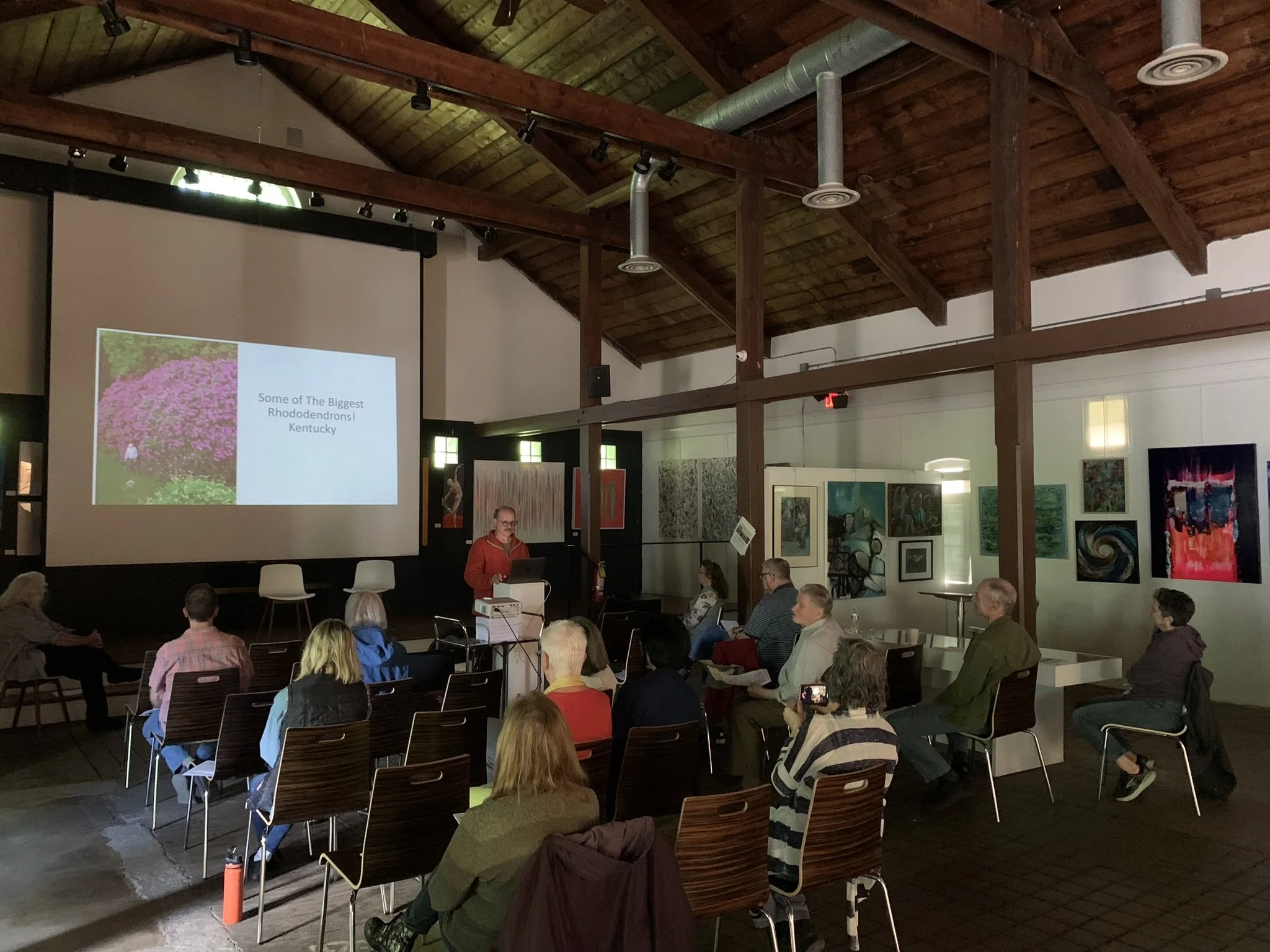Presentation: "My 40 Years Amongst the Rhododendrons" by horticulturist Kevin Wilcox. Learn about the five subdivisions of the rhododendron genus, best practices for cultivation, and see inspiring garden images.